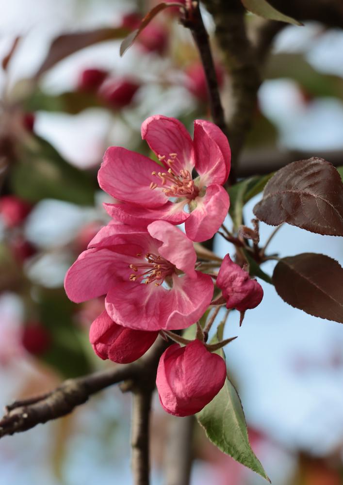Näyttävä purppuraomenapuu upealla vaaleanpunaisella kukinnalla ja tummalla lehdistöllä – todellinen katseenvangitsija pihaan.