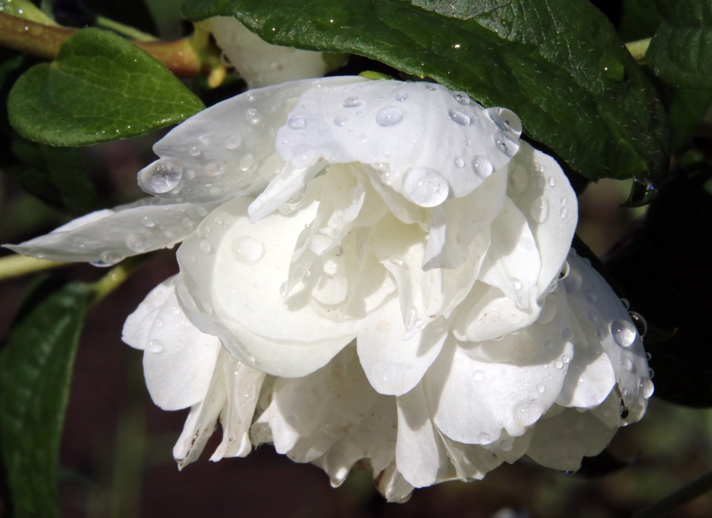 Elegantti jasmike suurin, kameliamaisia muistuttavin valkoisin kukin. Hillityn tuoksuinen ja näyttävä lajike, joka tuo puutarhaan arvokasta ilmettä alkukesällä.